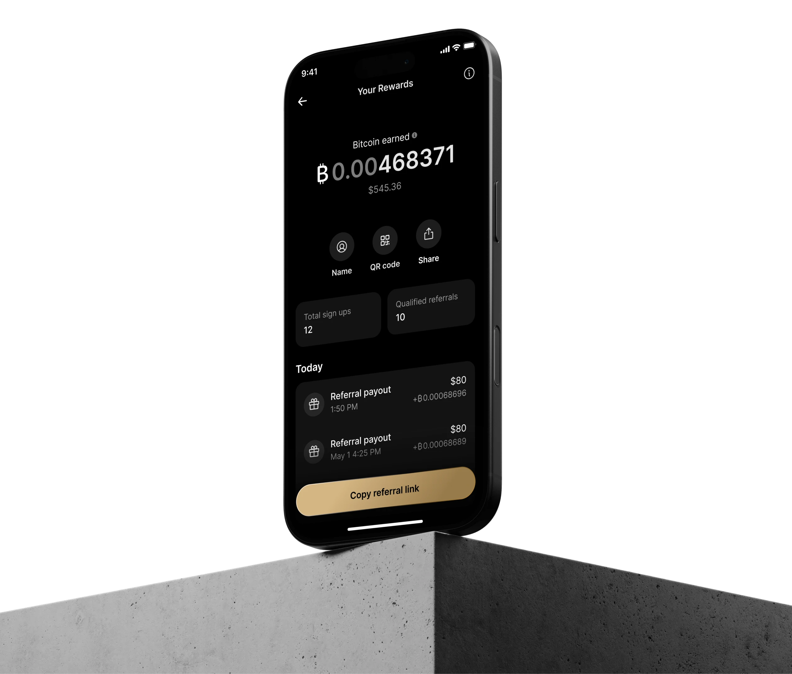 Share your link with friends and earn rewards when they buy Bitcoin.